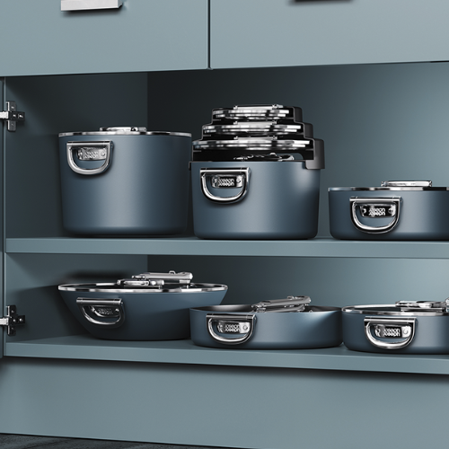 Batería de Cocina Space con Recubrimiento Cerámico y Mango Plegable 5pzs