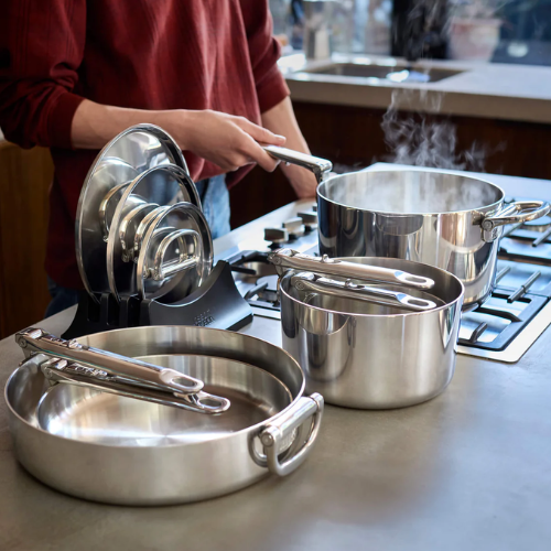 Batería de Cocina de Acero Inoxidable con Mango Plegable 6pzs