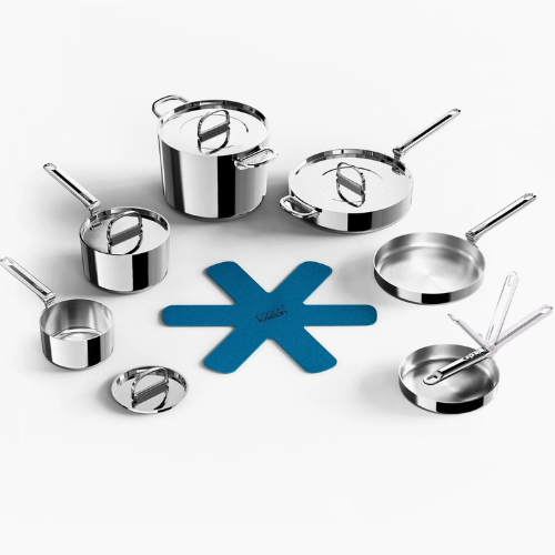 Es una batería completa diseñada para ofrecer rendimiento profesional, durabilidad y eficiencia en el almacenamiento. Fabricado en acero inoxidable multicapa con núcleo de aluminio, cada pieza garantiza una distribución uniforme del calor, resistencia al uso continuo y resultados consistentes en una amplia variedad de preparaciones culinarias.