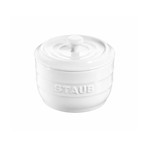 El salero cerámico Staub en color marfil es una pieza elegante y funcional que combina diseño tradicional con materiales de alta calidad. Fabricado en cerámica esmaltada resistente, este salero mantiene la sal en óptimas condiciones, evitando la humedad y los grumos, al mismo tiempo que aporta un toque de estilo a tu cocina o mesa.